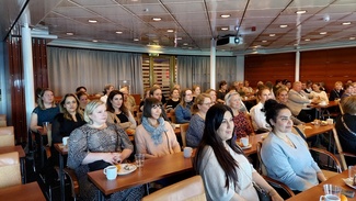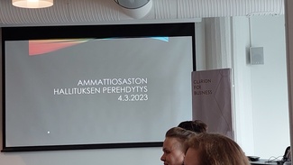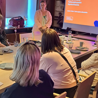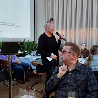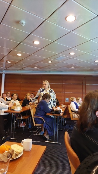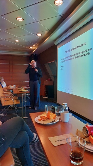 ![]() Kokouksen puheenjohtaja toimi Jaana Holm ja asiat esitteli ammattiosaston pj Jaana Takala |