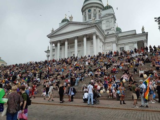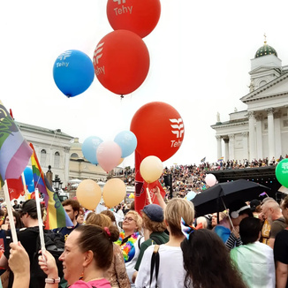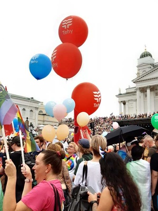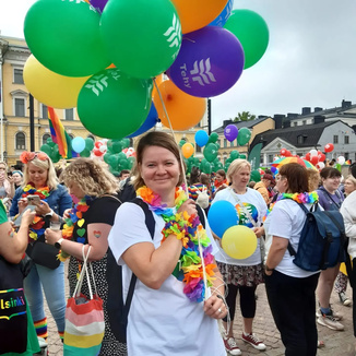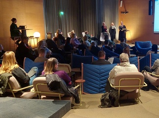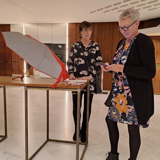 ![]() Pääluottamusmies Nina Andersson ja apulaispormestari Johanna Laisaari |