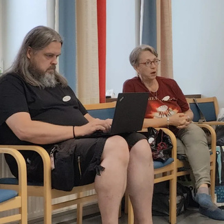 ![]() Psykiatria-ja päihdepalvelujen luottamusmies Tytti Poutanen ja Seniorikeskusten ja Helsingin sairaalan luottamusmies Perttu Lindholm |