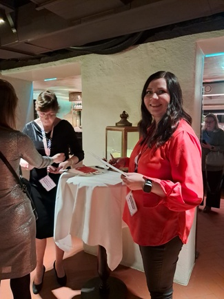 ![]() Pääluottamusedustaja Nina Andersson ottaa jäsenet vastaan |